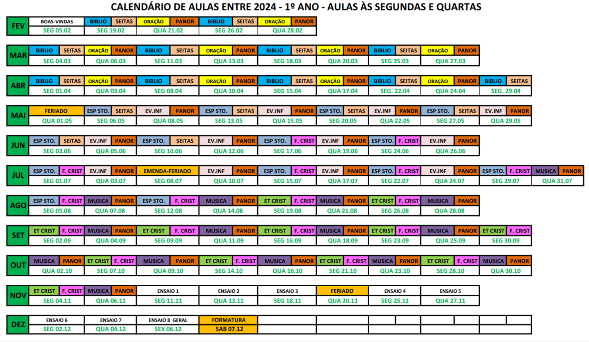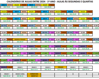 CALENDÁRIO DE AULAS ENTRE 2024 - 1º ANO - AULAS ÀS SEGUNDAS E QUARTAS